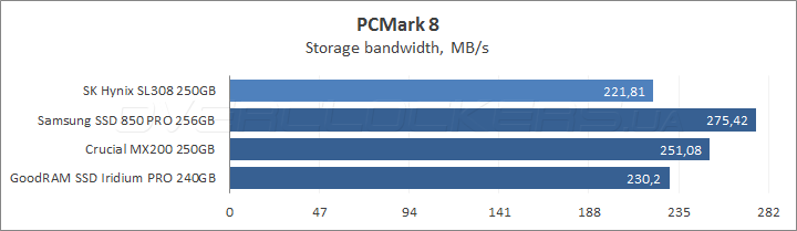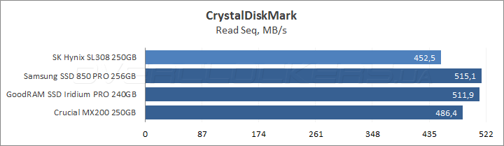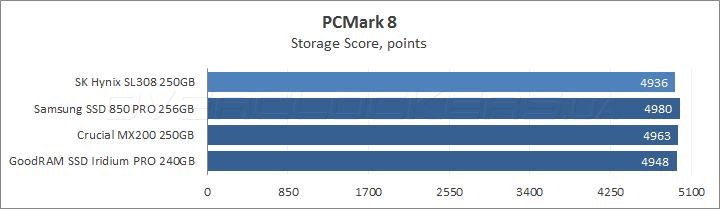 | Накопитель | SK hynix SSD SL308 | Samsung SSD 850 PRO | Crucial MX200 | GOODRAM SSD Iridium PRO |
