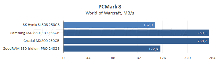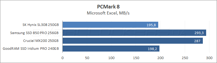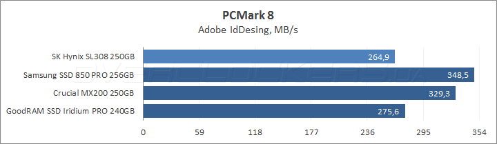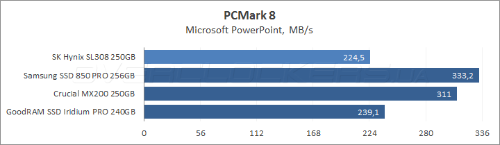 Суммарная оценка производительности SK hynix Canvas SL308 250GB оказалась очень близкой к результатам GoodRAM SSD Iridium Pro 240GB, основанного на контроллере Phison PS3110-S10. Оба накопителя обеспечат достаточный уровень быстродействия для комфортного повседневного использования ПК. Их отставание от Crucial MX200 250GB измеряется 20–30 Мбайт/с, при том, что последний является одним из самых быстрых решений с интерфейсом подключения SATA 6 Гбит/с, протестированных нами ранее.