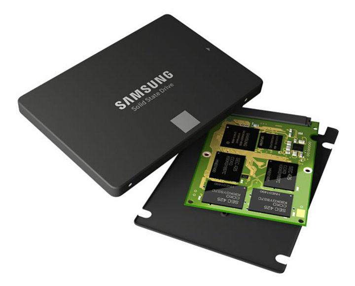 Сам же твердотельный «диск» внутри знакомого корпуса, а первые серии выполнялись в форм-факторе 2,5 и 3,5 дюймовых HDD, представляет собой печатную плату с массивами ячеек в виде поверхностно монтируемых чипов, специальный контроллер управления этим массивом и прочие компоненты. В зависимости от конкретного решения может быть или не быть в наличии буфер из DRAM. Это если очень в общих чертах.