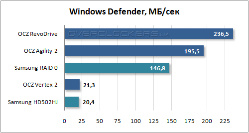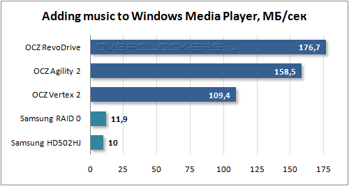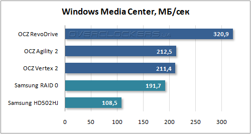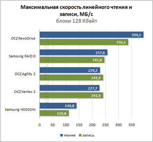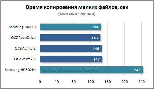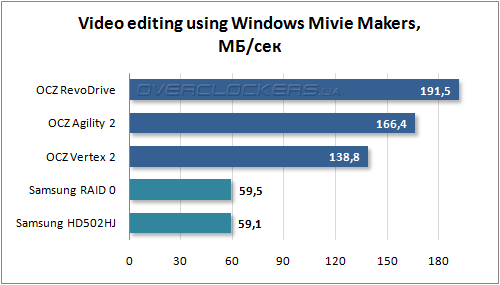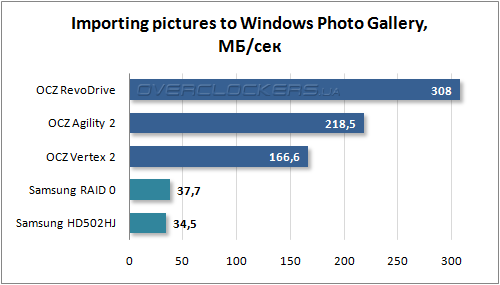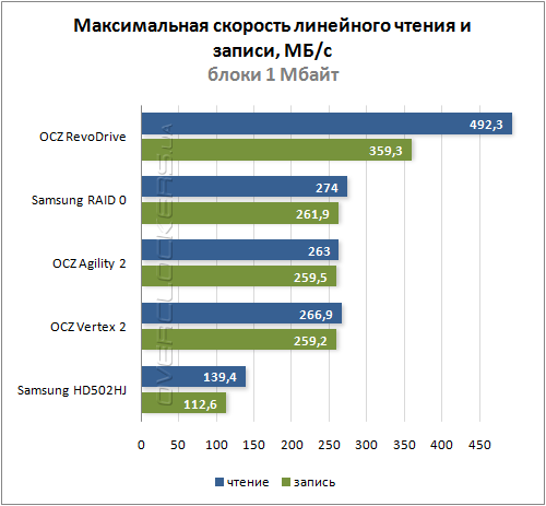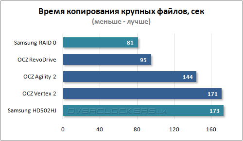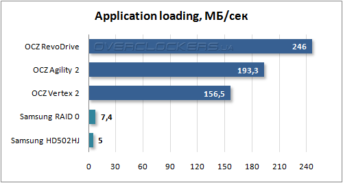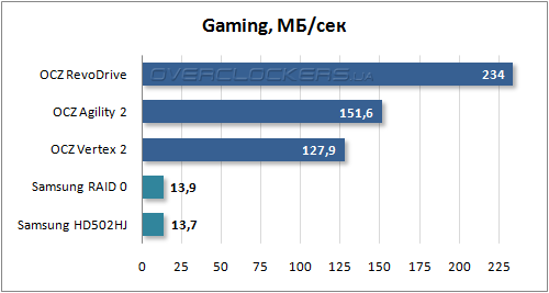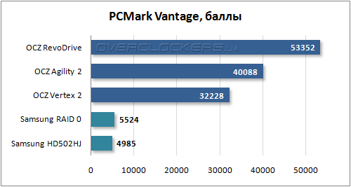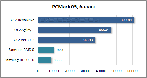 | Параметр | OCZ RevoDrive | OCZ Vertex 2 | OCZ Agility 2 | Samsung RAID 0 | Samsung HD502HJ |