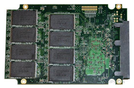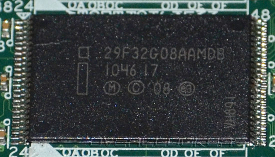 Открыв корпус накопителя, мы не обнаружили ничего неожиданного: тот самый контроллер Indilinx IDX110M01-LC и 16 34-нм чипов NAND-флеш производства Intel емкостью 4 Гбайт каждый.