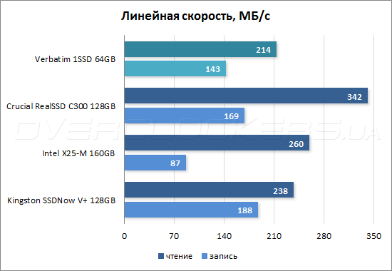 | Максимальная скорость чтения/записи, Мбайт/с | 230/230 (возможности контроллера) |