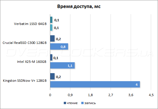Особенно радует время доступа — 0,06 мс для чтения и 0,14 мс для записи — отличный показатель для SSD такого класса.