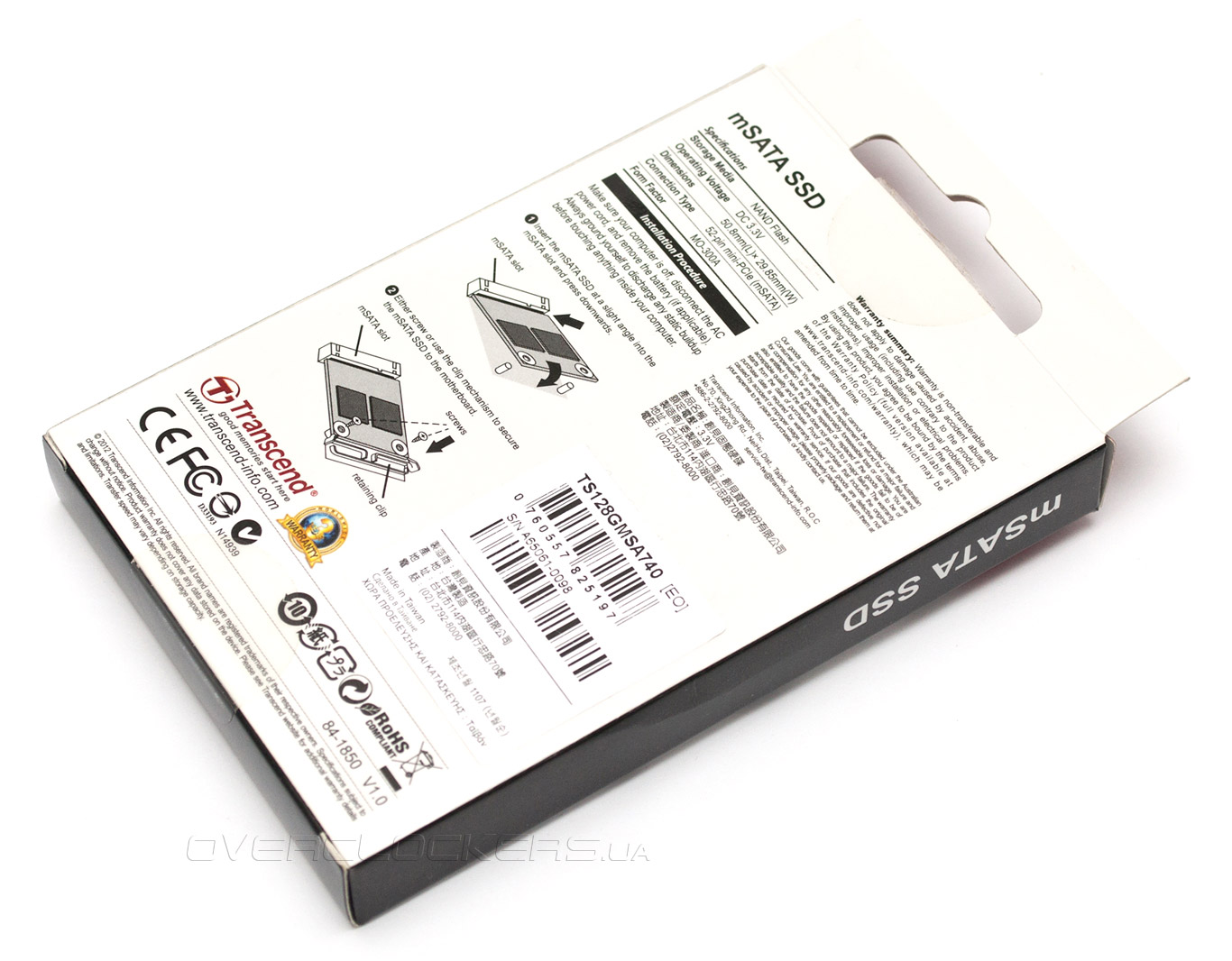 Обратная сторона упаковки гораздо более информативна, там указаны ключевые характеристики накопителя, приведена краткая инструкция по установке, а также наклеен стикер с серийным номером и названием модели.