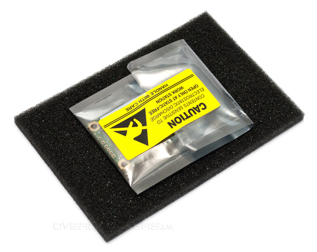 Комплект поставки отсутствует как таковой, внутри коробки находится SSD, заключенный в антистатический пакетик. От случайностей транспортировки содержимое защищено парой поролоновых прокладок.