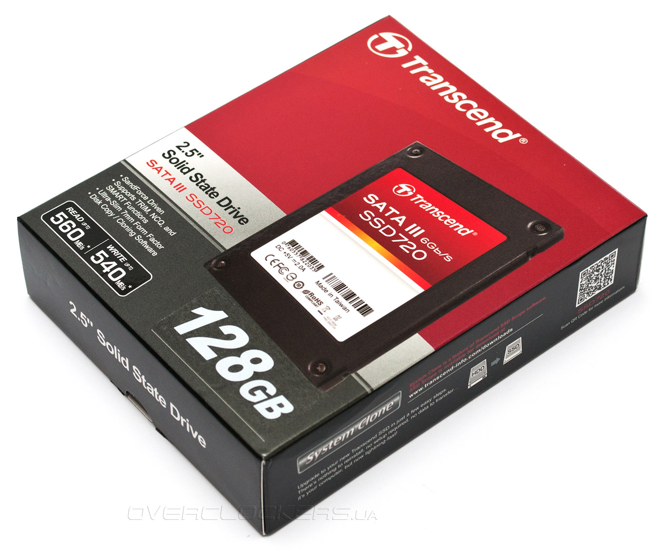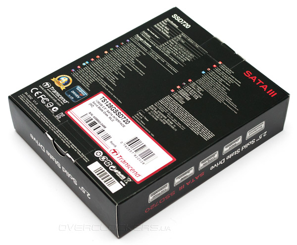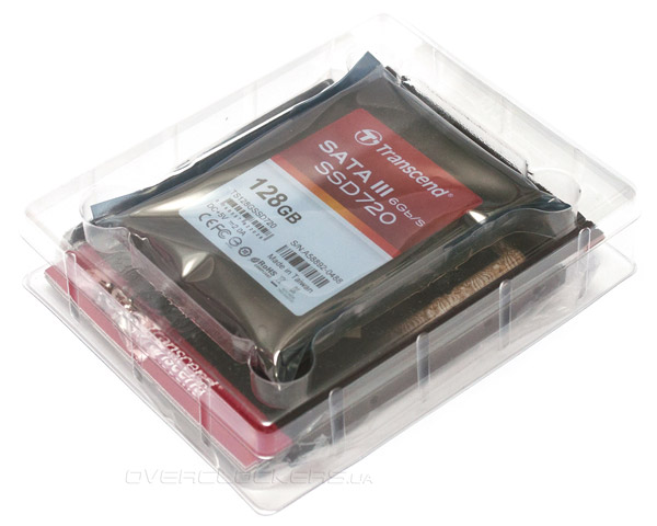 Все накопители семействаTranscend SSD720 поставляются в одинаковых пластиковых коробках, на лицевой стороне которых изображено запоминающее устройство, нанесено название модели, а также указаны объем дискового пространства и показатели быстродействия.