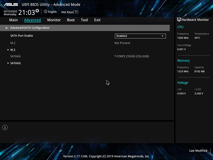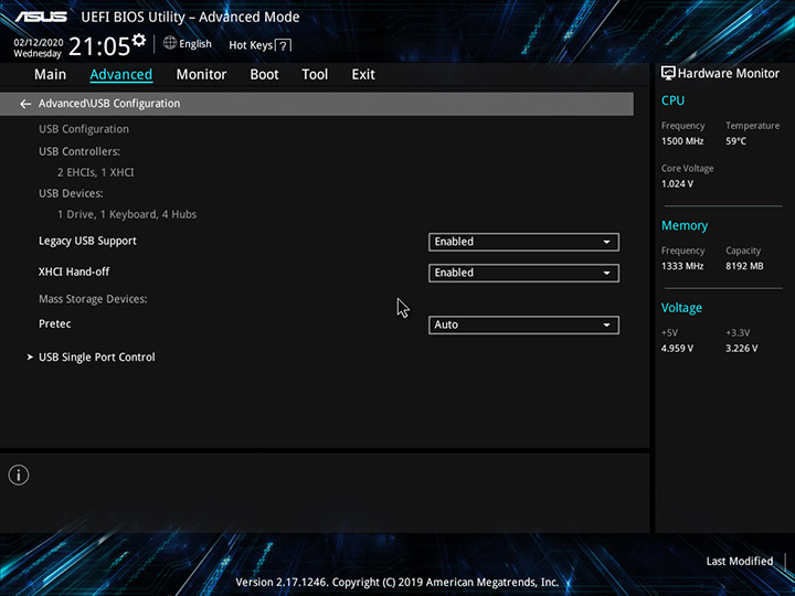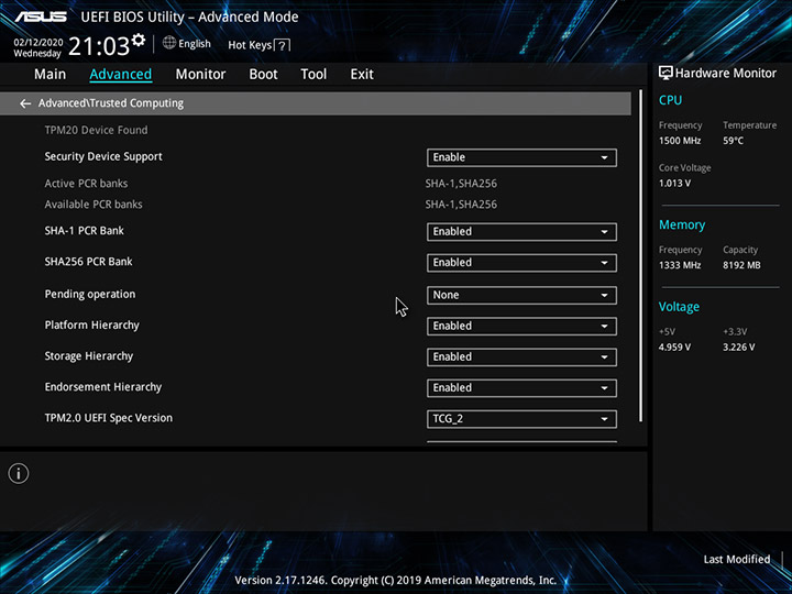 В разделе Advanced находится управление функцией Trusted Computing, которая отвечает за криптографическую защиту информации, настройки подсистемы хранения данных и периферийных устройств, специфические параметры SoC и контроллера USB.
