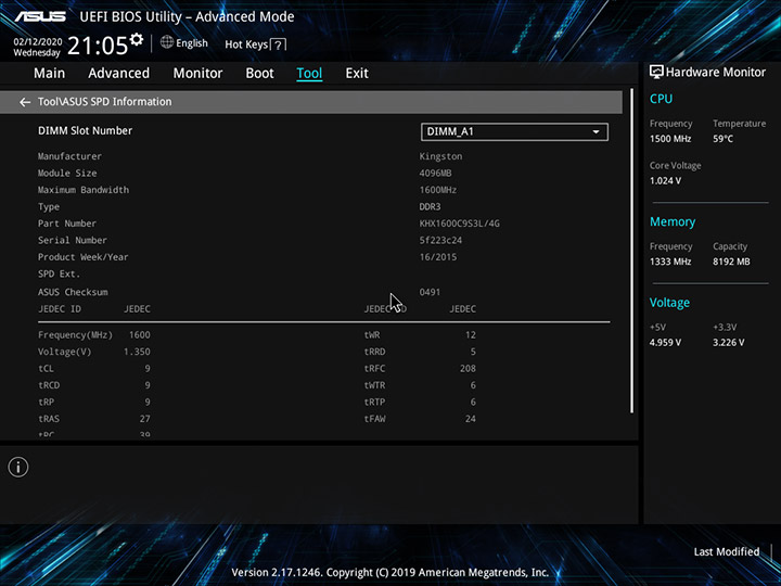 Наконец, в UEFI Setup встроена функция ASUS EZ Flash для обновления управляющего микрокода и утилита ASUS SPD Information, которая служит для получения подробной информации об установленных модулях памяти.