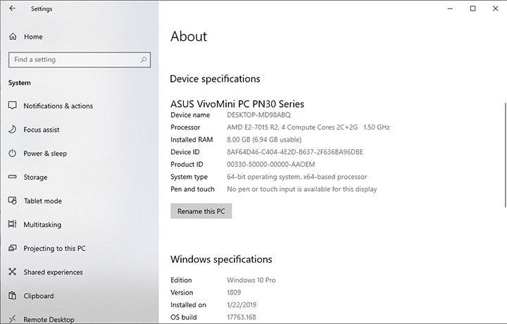 Немного, но вполне достаточно для установки необходимого ПО и даже хранения кое-какой информации. А тем, кому нужно больше места на диске — могут доукомплектовать ASUS Mini PC PN30 накопителем или воспользоваться одним из многих облачных сервисов, например, тем же One Drive, который входит в подписку Microsoft Office 365.