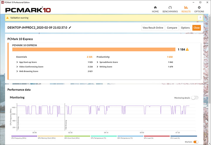 Судя по результатам ASUS Mini PC PN30 в популярном комплексном тестовом пакете PCMark 10, новичок не претендует на рекорды быстродействия, но не стоит забывать, что перед нами устройство начального уровня и не стоит ставить перед ним ресурсоемких задач.