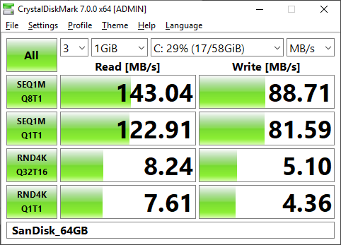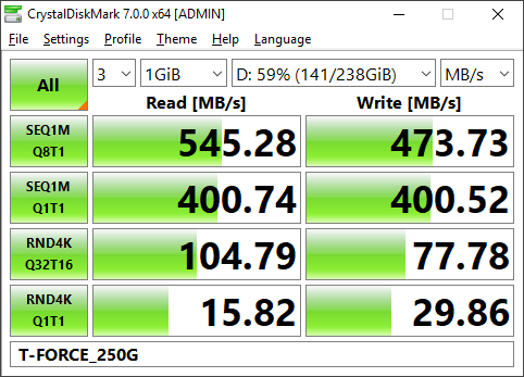Скорость работы встроенного флэш-накопителя ожидаемо невысока, но все же показатели быстродействия с блоками 4К в десятки раз больше, чем у традиционных HDD, что делает работу за Mini PC PN30 вполне комфортной. Радует, что возможностей SoC достаточно чтобы раскрыть потенциал среднеуровневого твердотельного накопителя, такого как Team T-Force Delta, тогда как установка новейших флагманских SSD с интерфейсом NVMe выглядит не слишком оправданной.