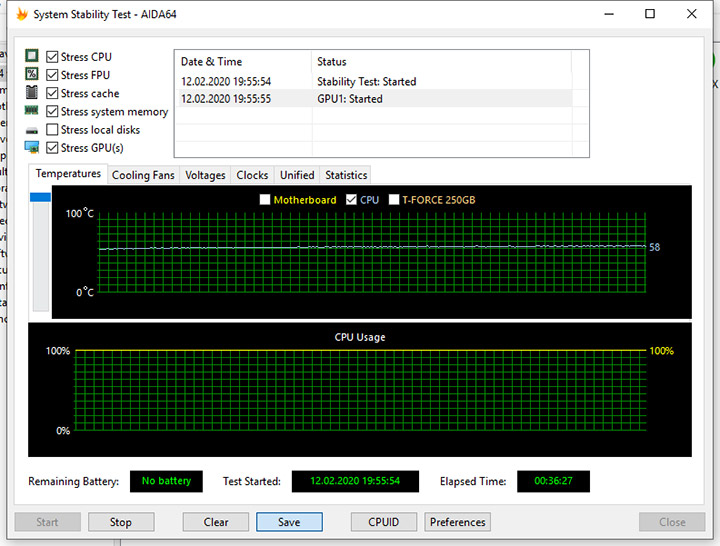 Установленная в ASUS Mini PC PN30 однокристальная система AMD E2-7015 имеет расчетный TDP 10 Вт, тем не менее, производитель предпочел использовать активную систему охлаждения. Впрочем, даже самый ресурсоемкий стресс-тест из состава AIDA 64 не сумел прогреть SoC выше 58° С. При этом вентилятор, хотя и раскрутился до 3700 об/мин, но оставался практически бесшумным уже на расстоянии 15 см от устройства.