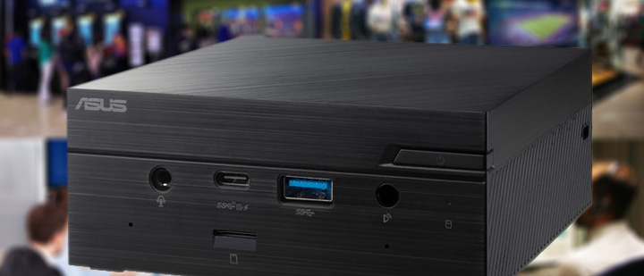 Как уже было сказано, по части внешнего вида новичок — типичный представитель Mini PC серии PN, да это, честно говоря, и к лучшему. Строгий лаконичный дизайн и матовый текстурированный пластик поверхности корпуса не будут смотреться чужеродно ни на рабочем столе современного офиса, ни на полке домашнего мультимедийного центра. Конструкция позволяет смонтировать устройство на VESA-кронштейн позади монитора, тем самым дополнительно сэкономив пространство. Размеры ASUS Mini PC PN50 составляют 115x115x49 мм при массе около 600 г вместе с парой модулей ОЗУ и твердотельным накопителем формата 2,5”. На передней панели находится аналоговый звуковой разъем 3,5 мм, порт USB 3.2 Gen 2 формата Type-C c максимальной скоростью передачи до 10 Гбит/с, совмещенный с цифровым видеовыходом DisplayPort 1.4, разъем USB 3.2 Gen 1 Type-A, «глазок» приемника ИК-сигналов, кнопка включения со встроенным индикатором питания, светодиод активности дисковой подсистемы, а также считыватель флэш-карт формата microSD. Кроме того, на передней панели выведена пара микрофонов, так что устройство «из коробки» готово к работе с голосовым помощником Microsoft Cortana.