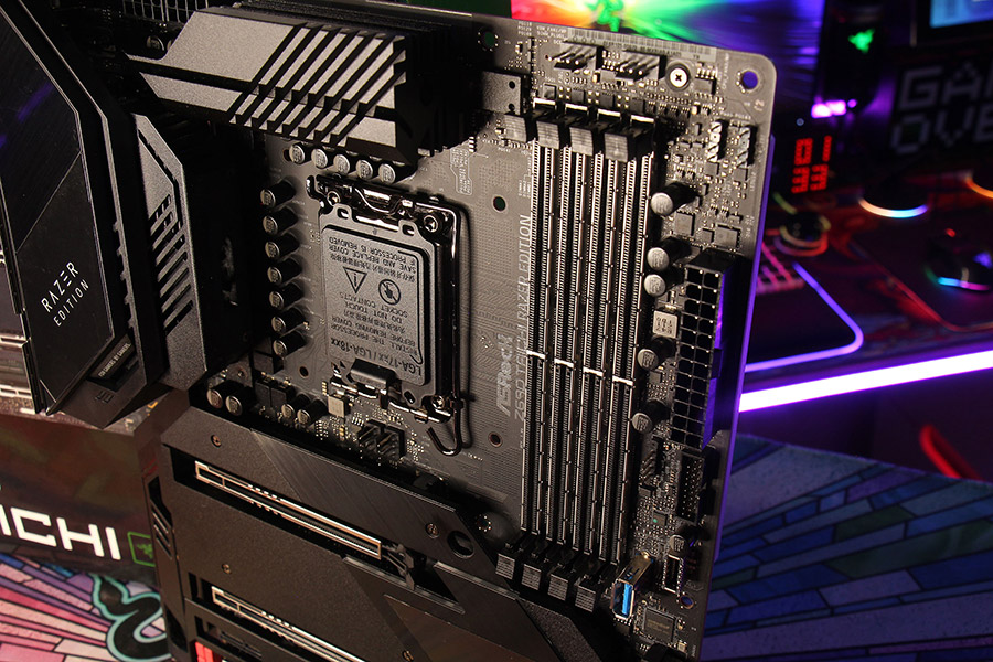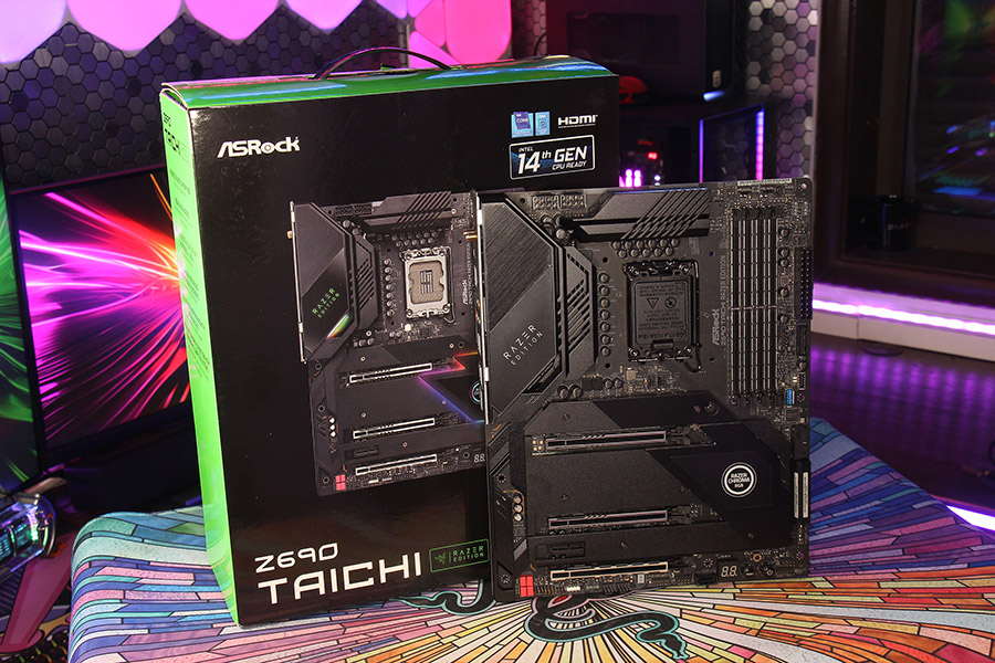 ASRock вообще отличаются ярким творчеством в своих продуктах и стараются привлечь большее внимание интересными коллаборациями. Одной из них и является серия плат Razer Edition, которая включала три модели: B550 Taichi Razer Edition, X570 Taichi Razer Edition и Z690 Taichi Razer Edition. От обычных разновидностей тех же плат они отличаются упаковкой, элементами дизайна в стиле Razer и подсветкой с поддержкой Razer Chroma. То есть, в остальном это продукт «средне-высокого» уровня среди изделий на базе Intel Z690. Поддерживает процессоры Intel Core 12-14 поколений и память DDR5.