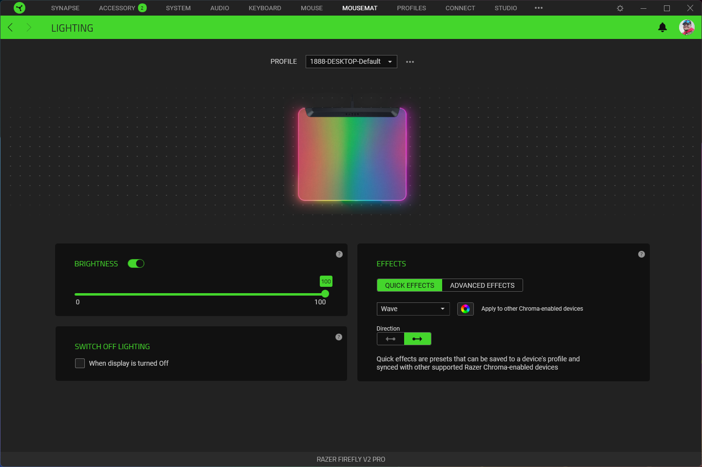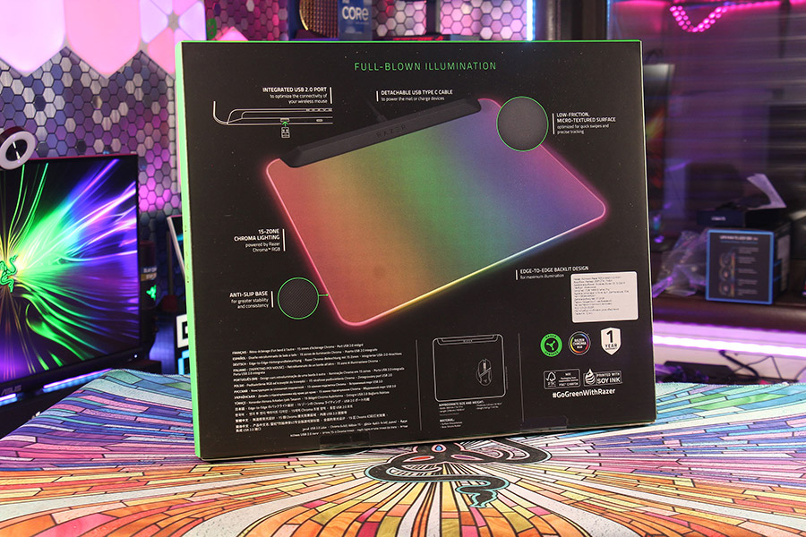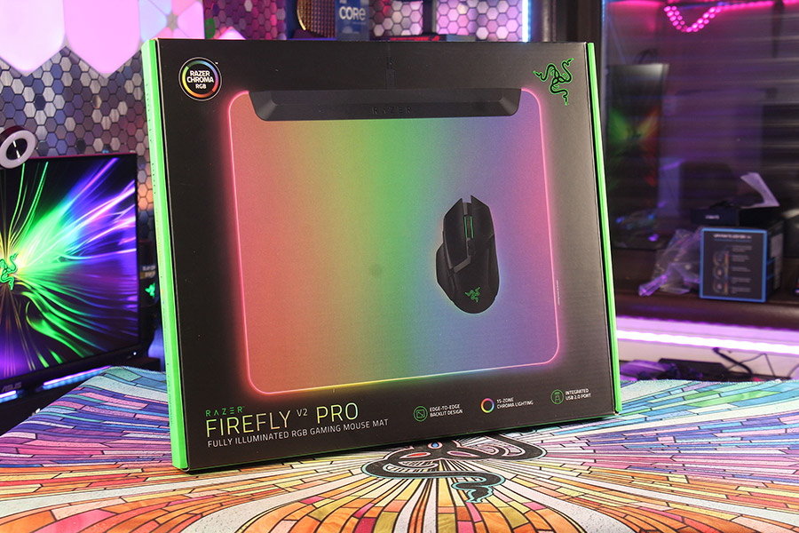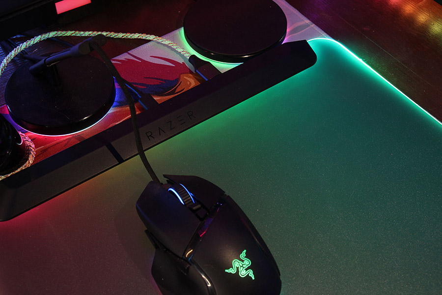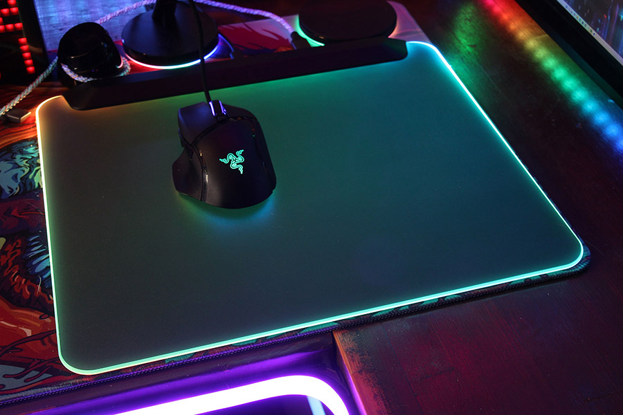Первый Firefly отработал у автора более пяти лет и до сих пор жаловаться было не на что, это хорошая пластиковая поверхность средних размеров с подсветкой Chroma по периметру. Но Firefly V2 Pro находится просто в другой лиге. Во-первых, он больше: 360x278 мм. Во-вторых, он не просто яркий — в принципе, ярче его во всём компьютере только мониторы… 15-зонная ARGB-подсветка контролируется Razer Chroma.