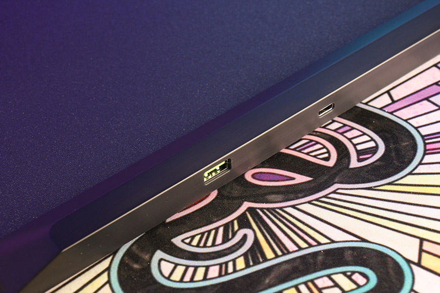 «Входной» USB-порт имеет разъем Type C и съемный кабель, которого не хватало старым Firefly. Но у этого коврика еще есть «выходной» USB-порт для максимально надежного подключения адаптера беспроводной мыши — в результате, туда пошел кабель от клавиатуры, который сам по себе имеет RGB-подсветку.