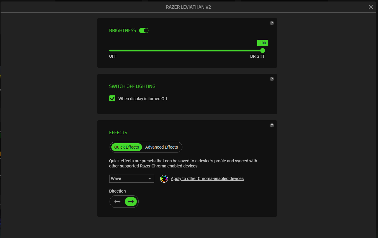 А вот звук и в играх, и в музыке в целом вполне приличный. Скажем так, соответствует классу и размеру устройства. Как и положено саундбару, Razer Leviathan V2 симулирует окружающий звук, в том числе с поддержкой THX Spatial Audio. Как и положено любой симуляции, получается это хуже, чем на физических устройствах. Интересно было бы попробовать Leviathan V2 Pro, который вдвое дороже, больше и мощнее.