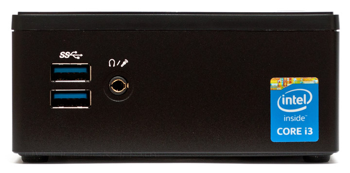 На лицевой поверхности GB-BXi3H-5010 нашлось место для двух портов USB 3.0 и одного аудиоразъема 3,5 мм, который служит одновременно для воспроизведения и записи звука.