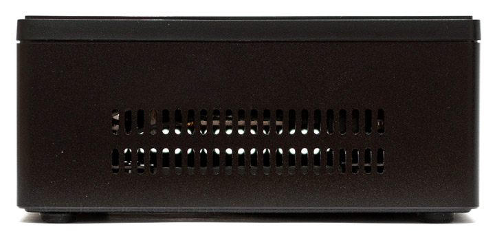 Боковые грани корпуса лишены портов расширения и органов управления, зато, здесь можно увидеть вентиляционные решетки, сквозь которые внутрь мини-ПК поступает свежий воздух.