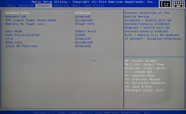 Вкладка Advanced отвечает за настройку функций расширения системной логики и немногочисленных дополнительных контроллеров, технологии аппаратной виртуализации, а также режима работы встроенного видеоядра.