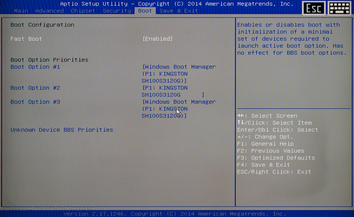 Мы с вами уже привыкли, что прошивки миниатюрных ПК не отличаются разнообразием настроек и не обладают изысканными пользовательскими интерфейсами, поэтому, придираться к UEFI Setup BRIX s смысла нет, тем более, что все необходимые опции присутствуют, а разгон никогда не был и вряд ли будет приоритетом для устройств, подобных GB-BXi3H-5010.