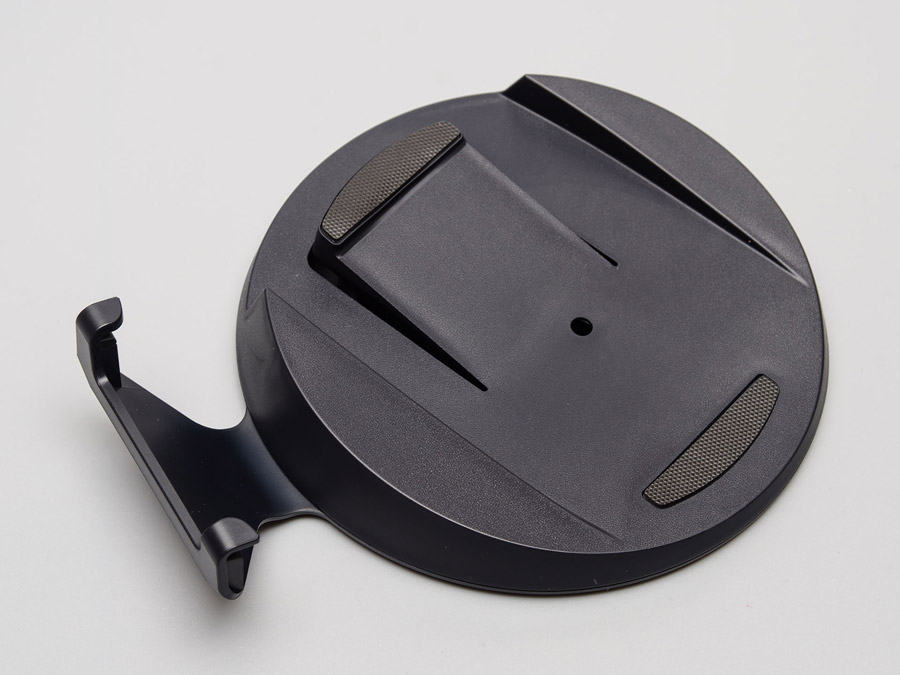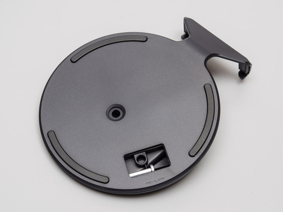 Приставка достаточно устойчива в вертикальном положении, но, чтобы она не царапала поверхность стола или тумбочки, ее необходимо установить на подставку. Для этого снизу по центру корпуса вынимается пластиковая заглушка и вместо нее вкручивается винт, например, при помощи монеты, фиксирующий саму подставку.