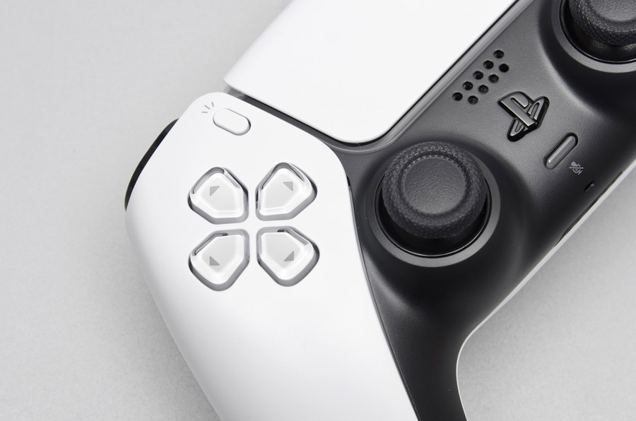Сенсорная панель стала больше, как, впрочем, и сам контроллер, и обзавелась подсветкой по краю тачпада. Крестовина и кнопки управления теперь прозрачные с серыми указателями, что добавило стильности геймпаду. Аналоговые стики стали рифлеными по краю, тогда как у джойстиков прошлого поколения они были шершавыми, а кнопки меню и создания (ранее Share) из-за своего размера легко могут затеряться среди остальных.