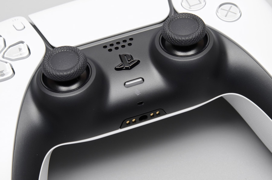 Изменилась клавиша PS, которая теперь выполнена в форме логотипа PlayStation, встроенный динамик, разъем гарнитуры и контакты для докстанции остались на месте, но добавился встроенный микрофон и кнопка для его отключения.