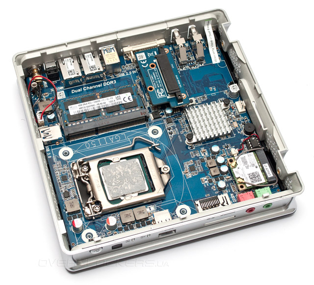 В основе ZBOX IQ01 Plus лежит системная плата разработки Zotac, базирующаяся на чипсете Intel Z87 и оснащенная разъемом LGA1150. В неттоп можно устанавливать любые процессоры Intel Haswell с TDP до 45 Вт включительно. Более мощный CPU установить вряд ли удастся, так как преобразователь напряжения насчитывает только три фазы. В качестве прошивки используется UEFI Setup, естественно, без какого либо намека на возможности разгона. Материнская плата имеет два слота SO-DIMM для установки модулей ОЗУ DDR3 частотой до 1600 МГц включительно. Несмотря на то, что процессорный контроллер оперативной памяти поддерживает двухканальный режим, производитель оснастил устройство единственным модулем SK Hynix HMT351S6EFR8C-PB объемом 4 ГБ, который функционирует на частоте 1600 МГц с таймингами 11-11-11-28-1Т.