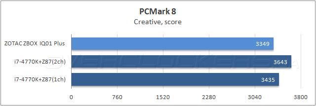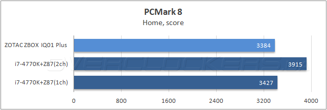 Как и следовало ожидать, Zotac ZBOX IQ01 Plus проиграл тестовому стенду, оснащенному старшим Haswell, но отставание нельзя назвать критическим. Что касается эффекта от включения двухканального режиме ОЗУ, то прирост достигается за счет игровых подтестов, которые чутко реагируют на увеличение пропускной способности оперативной памяти.