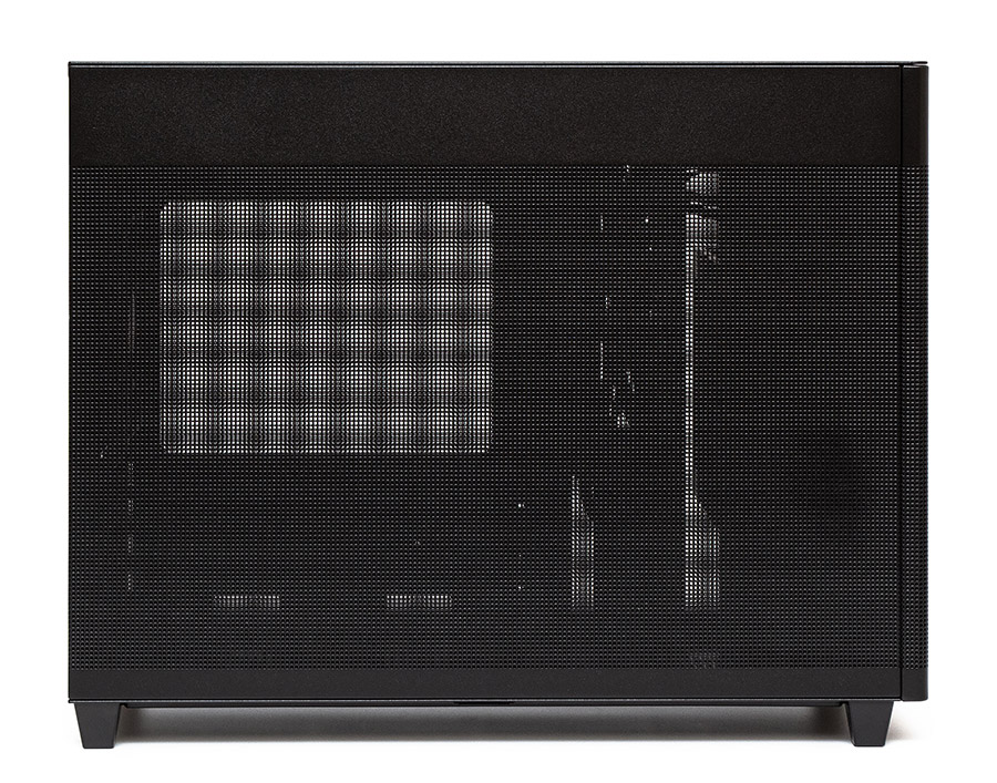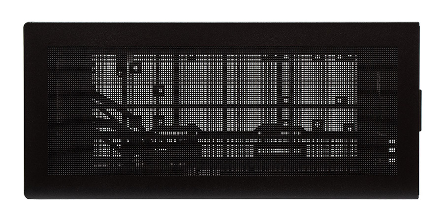 Ліва боковина також повністю решітчаста, за винятком суцільної смуги зверху. Через неї на просвіт навіть видно нутрощі шасі. Але саме цікаве полягає у тому, що в кріпленнях панелі немає жодних гвинтів. Щоб відкрити її, достатньо потягнути за заглиблення позаду зверху. Тоді верхня частина вийде з пластикових затискачів, і панель можна бути зняти у напрямку наверх.