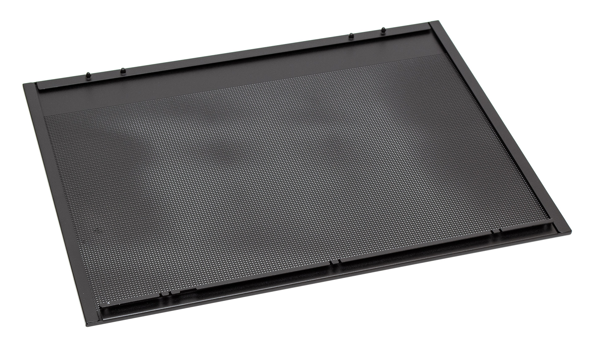 Зі зворотної сторони панелі є три ребра жорсткості, зачепи попереду і по чотири напрямні в поєднанні попарно з чотирма фіксаторами. На рамі корпусу зверху є зміщені в ліву сторону довгасті посадкові місця для трьох 120-мм або двох 140-мм вентиляторів.