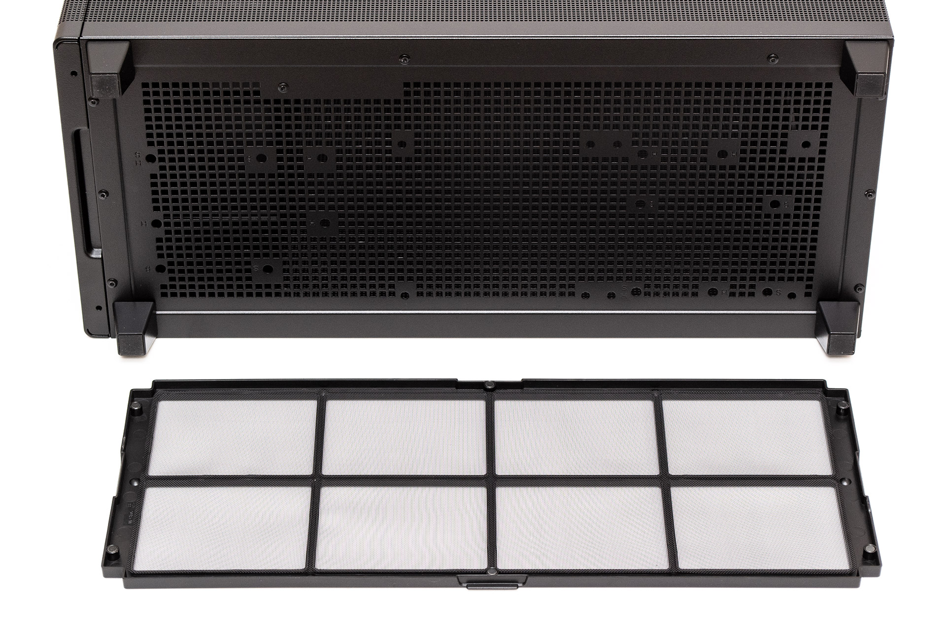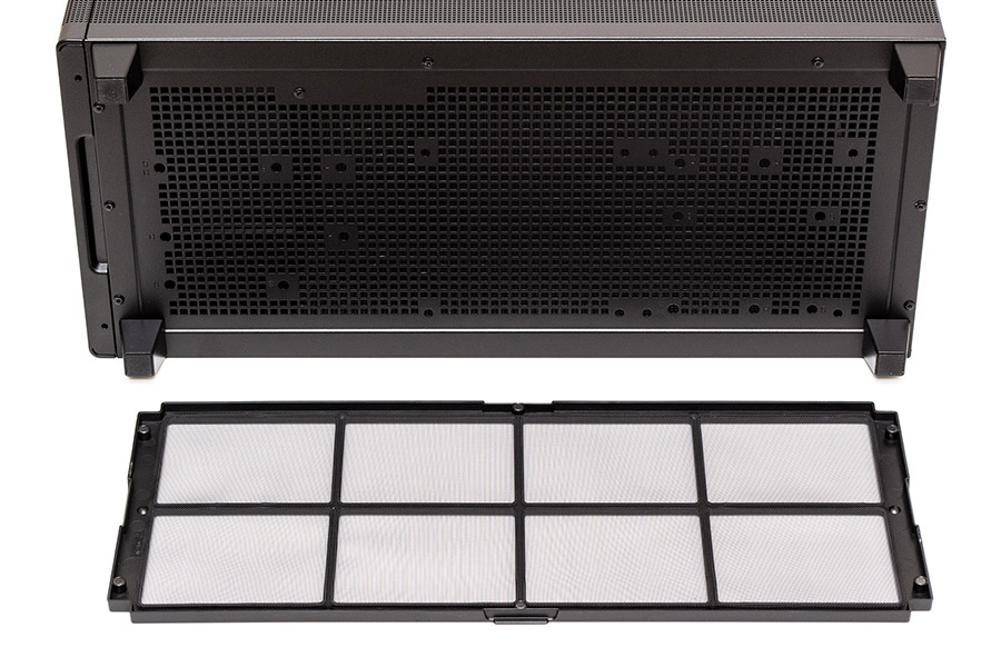 Нижня панель корпусу також повністю відкрита для доступу повітря. Але ще сюди додали якісний магнітний пиловий фільтр у вигляді невеличкої сіточки на пластиковій рамці.