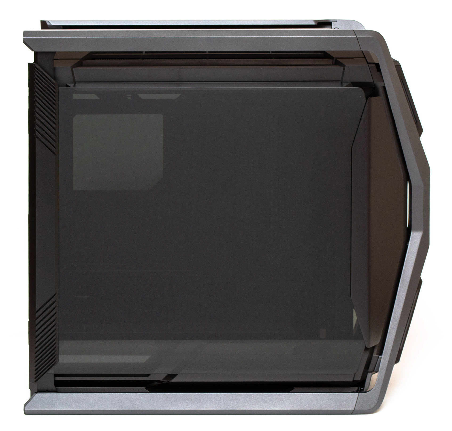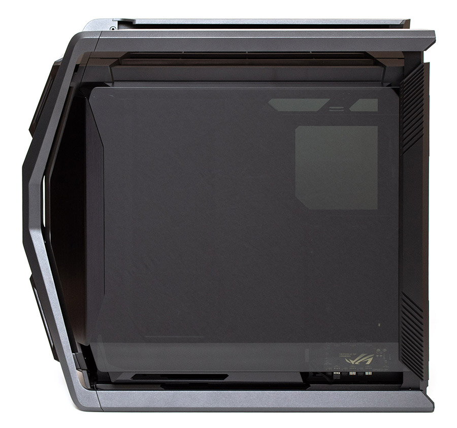Ліва бокова панель виготовлена із загартованого та тонованого скла завтовшки 4 мм. Попереду та позаду на ній є масивні накладки з алюмінію. Повного прилягання немає, повітря може вільно проходити повз усі грані всередину.