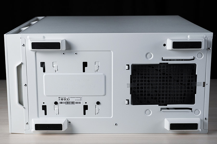Пластикові ніжки корпусу розташовані по кутах. Знизу вони мають м’які спінені наліпки. Висота ніжок складає 19 мм. Перфорація нижньої частини шасі передбачена тільки в зоні блоку живлення, де також є гвинти для зміни положення каретки HDD.