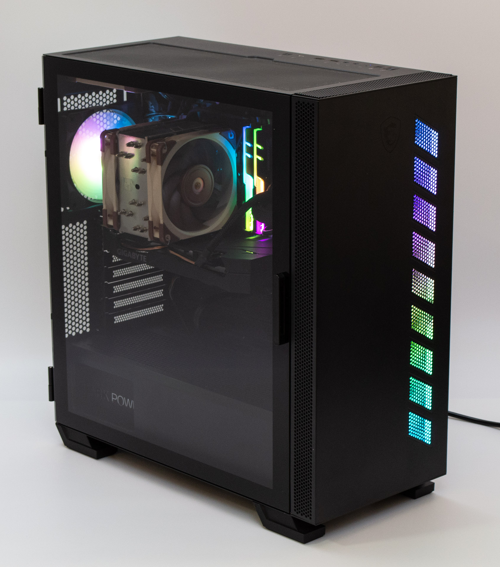 Компоненти системи добре видно через бічне скло. Підсвічування вентилятора та передньої панелі виглядає цілком непогано. Хоча якщо дивитися на шасі праворуч, світлодіодна стрічка спереду виглядає надто яскравою. Багато режимів і ефектів підсвічування перемикаються однією кнопкою.