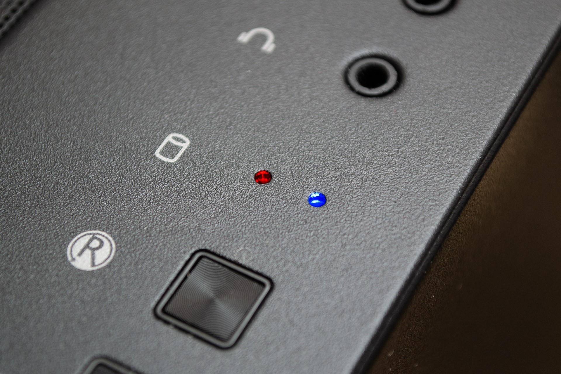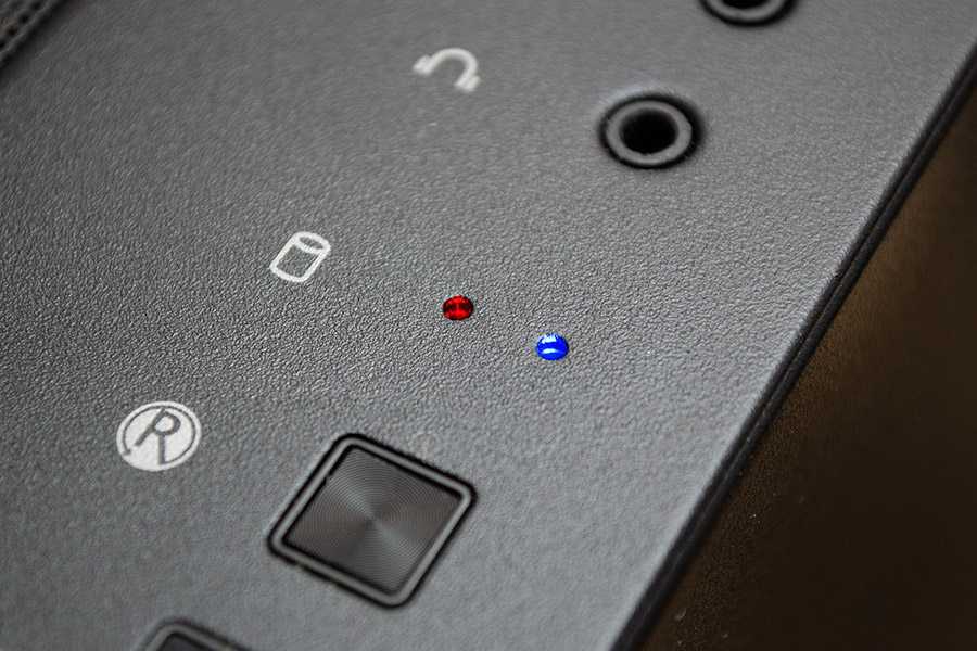 Індикатори живлення системи та активності накопичувачів яскраві, якщо дивитися на них під прямим кутом.