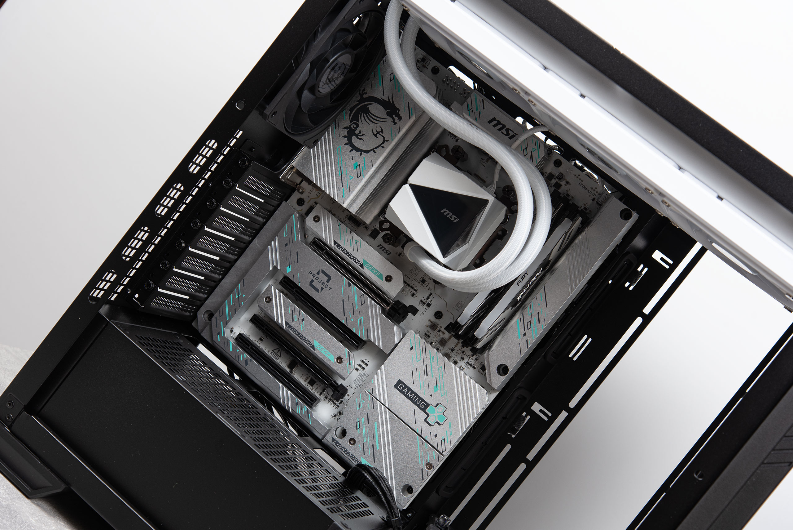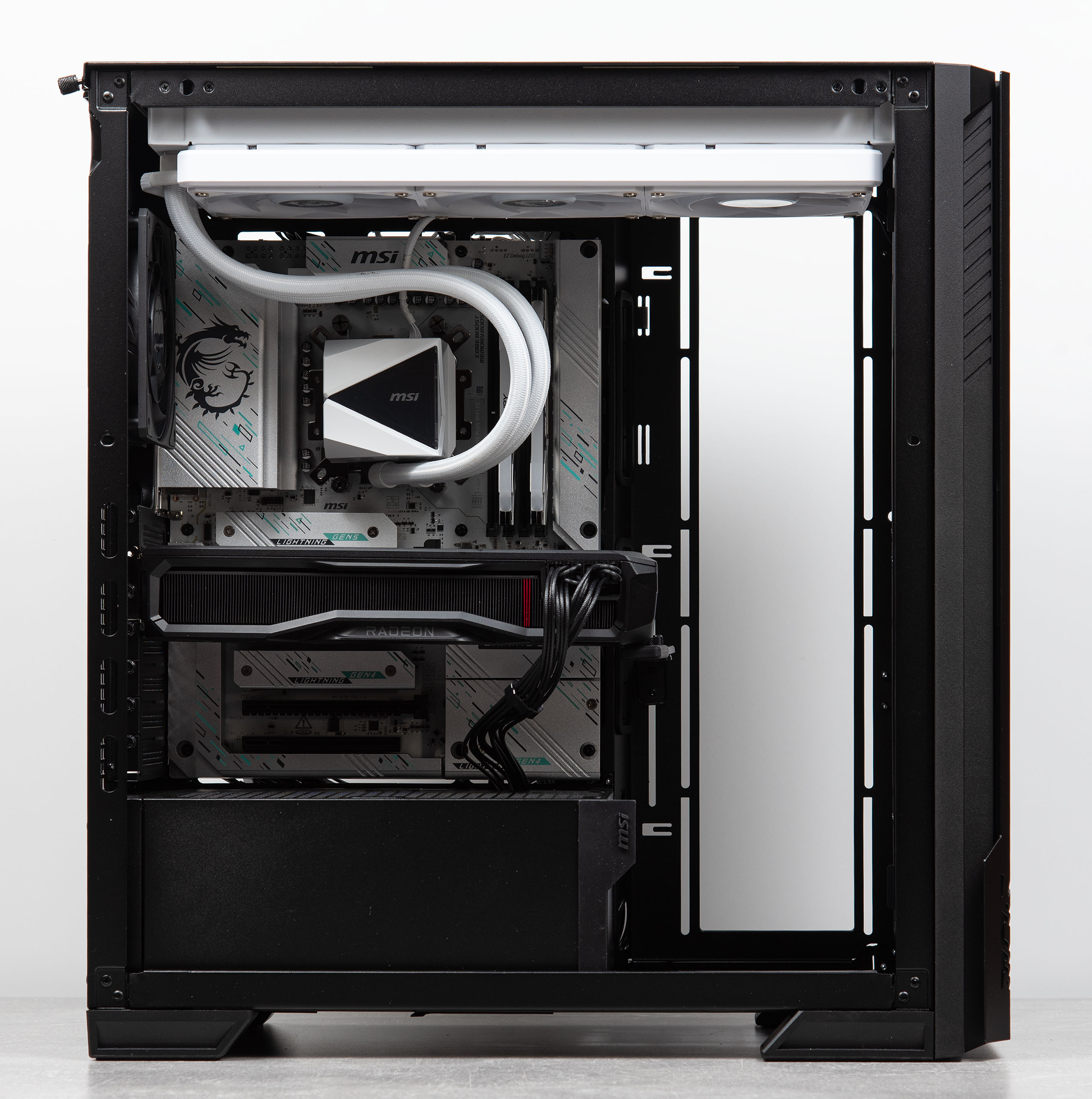 Компанія MSI пропонує гарний корпус в плані охолодження компонентів, який по ефективності не сильно відрізняється від відкритого стенду. І це стосується процесора та відеокарти, тоді як про другорядні компоненти можна навіть не згадувати — в MPG VELOX 300R AIRFLOW PZ вони значно холодніші, ніж у відкритому вигляді на столі. Дизайн шасі в міру агресивний та гарно впишеться в ігровий сетап чорного кольору (але є й білий варіант корпусу). Вентилятори постачаються в комплекті, тож користувачу не прийдеться додатково витрачати кошти. Передні вертушки навіть з RGB-підсвічуванням, а вбудований хаб дозволить керувати ефектами. Але типорозмір в них нестандартний і встановити інші моделі через конструктивні особливості шасі не вийде. В цьому, мабуть, єдиний мінус корпусу. Зате користувач зможе обрати місце встановлення радіатора системи рідинного охолодження, збоку або зверху, що частіше зустрічається в панорамних корпусах. Ну а головна «фішка» розглянутої моделі — підтримка материнських плат з роз’ємами на зворотному боці стане у пригоді при збиранні акуратної системи.