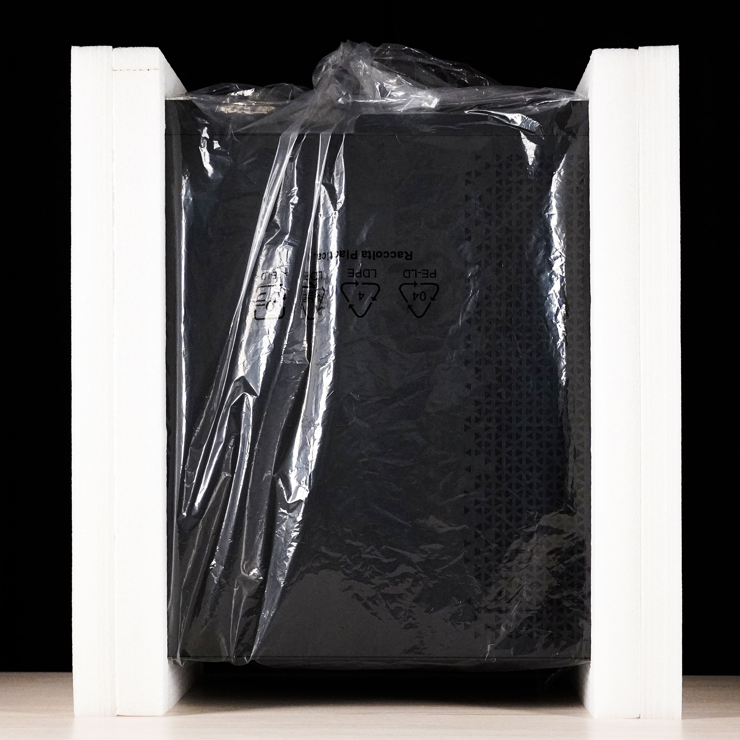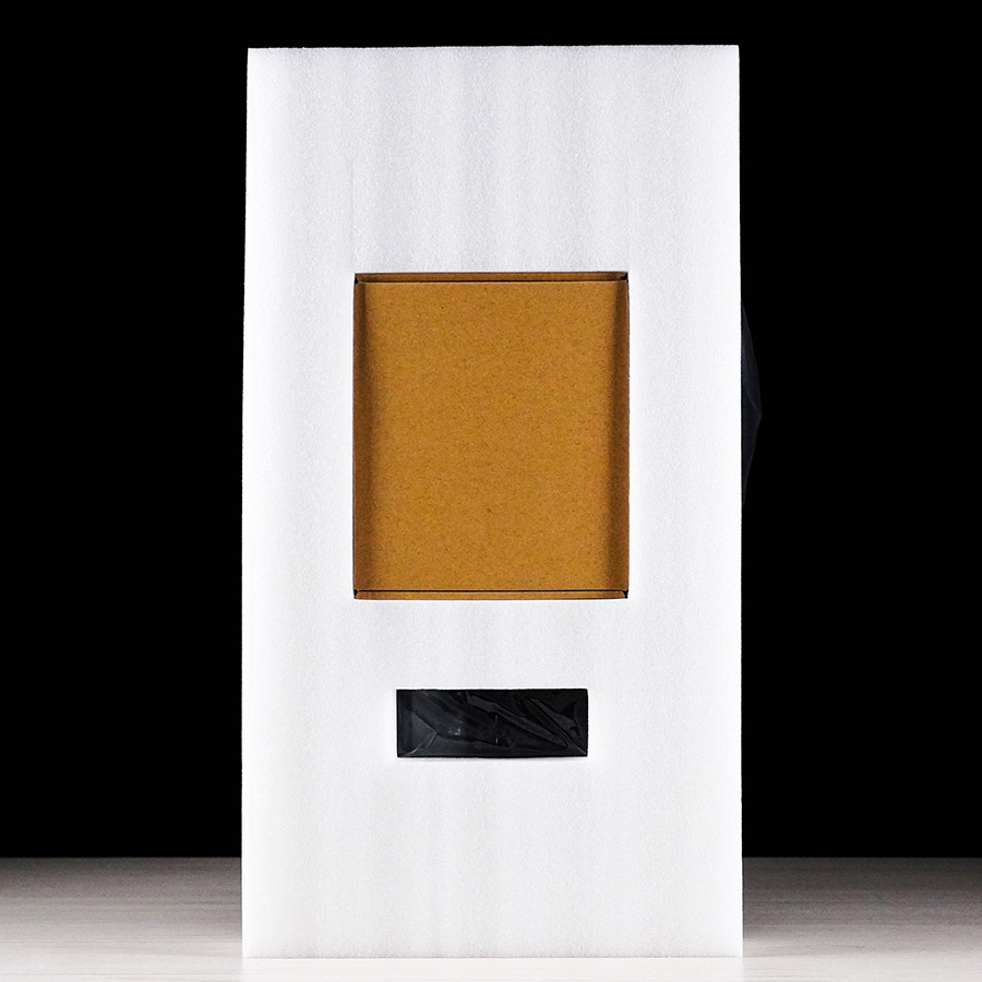 Для захисту від пошкоджень всередині коробки корпус надійно зафіксовано двома демпферами зі спіненого поліетилену.