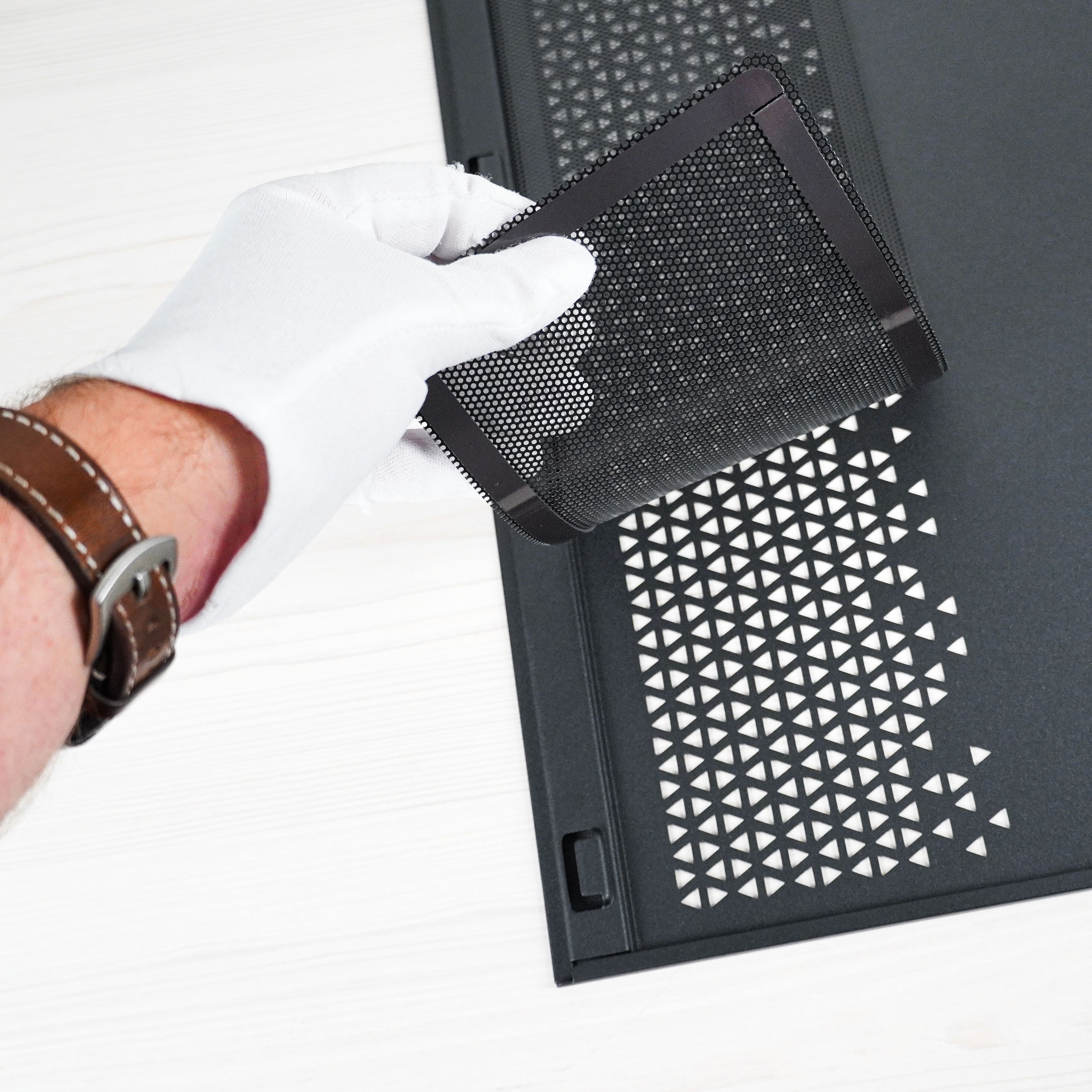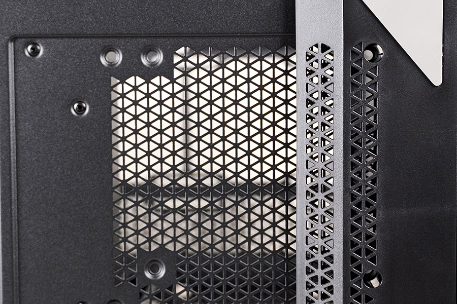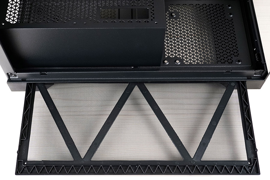 Зняття пилового фільтра не викликає складнощів завдяки магнітному кріпленню, що може стати у пригоді, зважаючи на часте встановлення зверху вентиляторів для виведення повітря з корпусу.