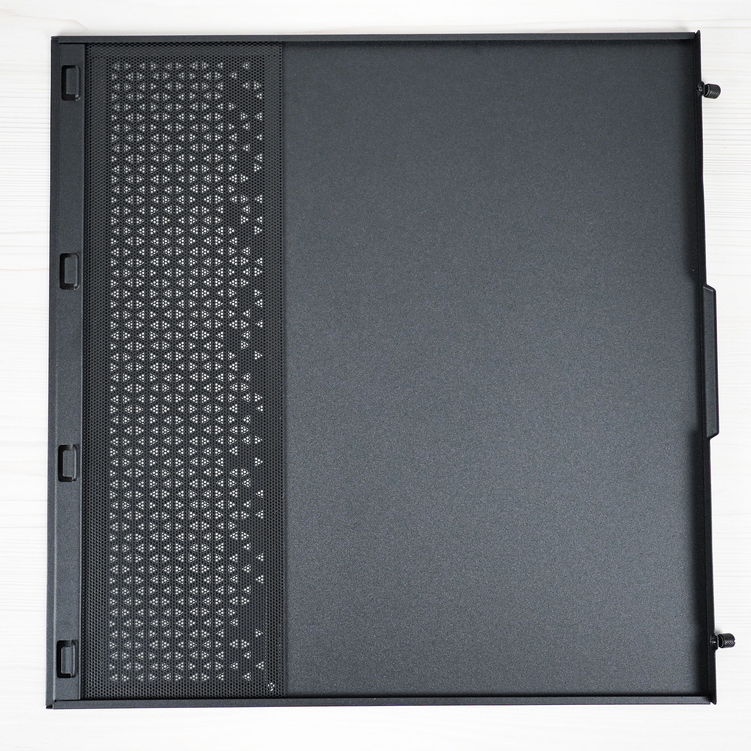 Права панель металева і має перфорації в місцях кріплення вентиляторів. Ця панель закріплюється двома гвинтами та чотирма штампованими зачепами.