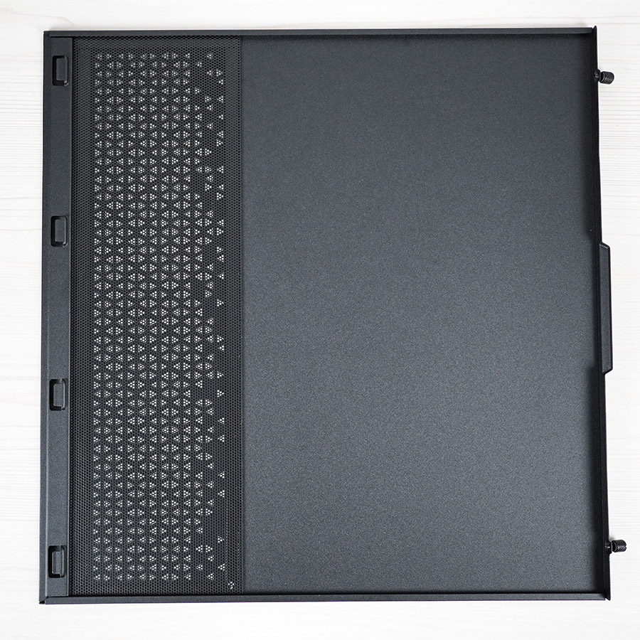 Зняття бокової скляної панелі потребує попереднього демонтажу верхньої, яка майже повністю перфорована та оснащена пиловим фільтром.