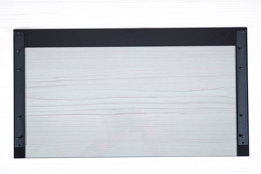 Металеві планки кріплення приклеєні до скла та тримаються міцно. На кутах скла з передньої частини присутні невеличкі гумові демпферні ущільнювачі, а на задній стороні розміщений спінений демпфер.