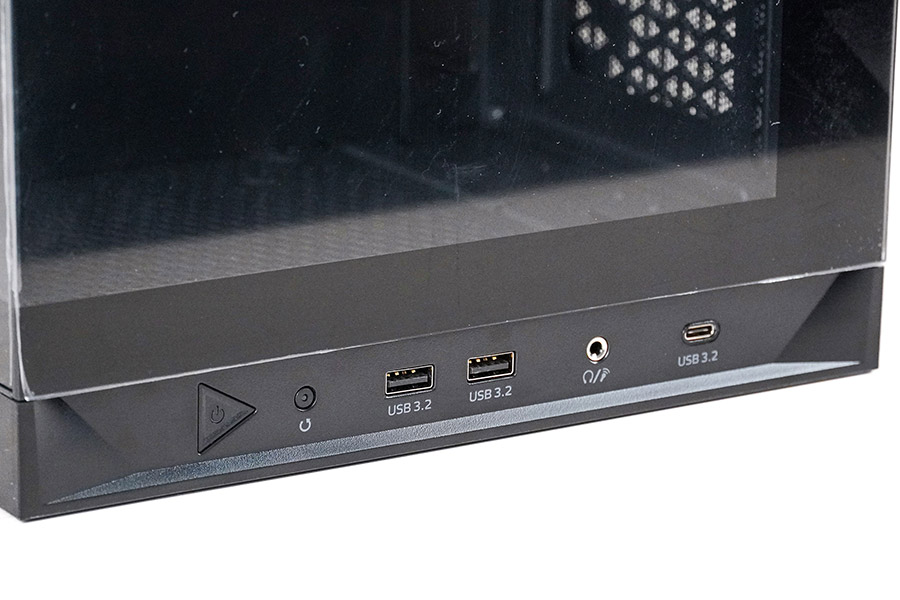 В ніжці, розташованій під переднім склом, знаходиться кнопка увімкнення, біля неї — маленька кнопка перезавантаження, а вже в ній вмонтований світлодіод активності накопичувача. Також тут розташовано два роз’єми USB 3.2 Type-A, 3,5-мм аудіоджек та один порт USB 3.2 Type-C.