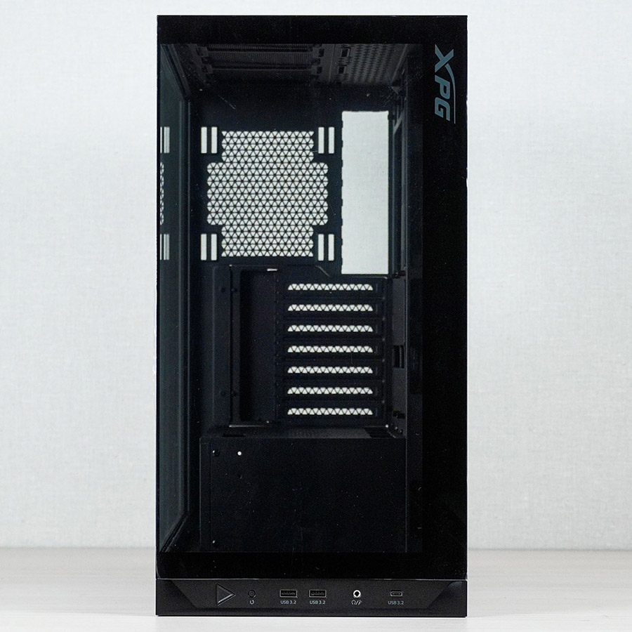 Корпус оснащений панорамними панелями із загартованого тонованого скла спереду та з одного з боків, які забезпечують чудовий огляд внутрішніх компонентів. Інші панелі мають перфорацію, що має сприяти хорошій вентиляції встановлених компонентів.