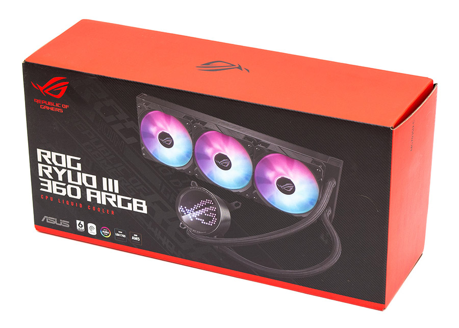 Загальна концепція системи рідинного охолодження ASUS ROG Ryuo III 360 ARGB впізнавана з першого погляду. Є чорний алюмінієвий радіатор формату 360 мм, поєднаний гнучкими гумовими шлангами у нейлоновому обплетенні з помпою, суміщеною з водяним блоком. Довжина трубок із зовнішнім діаметром в 12 мм становить 400 мм.