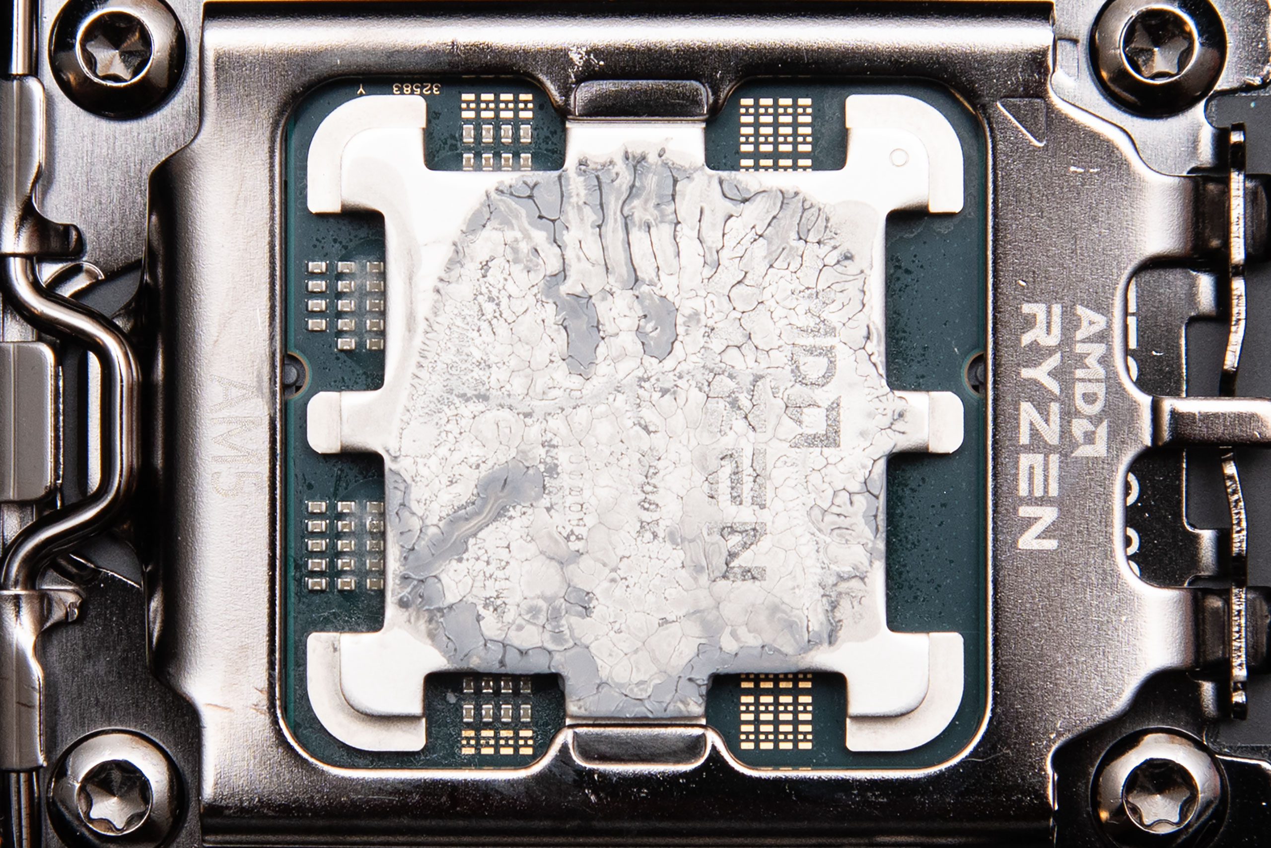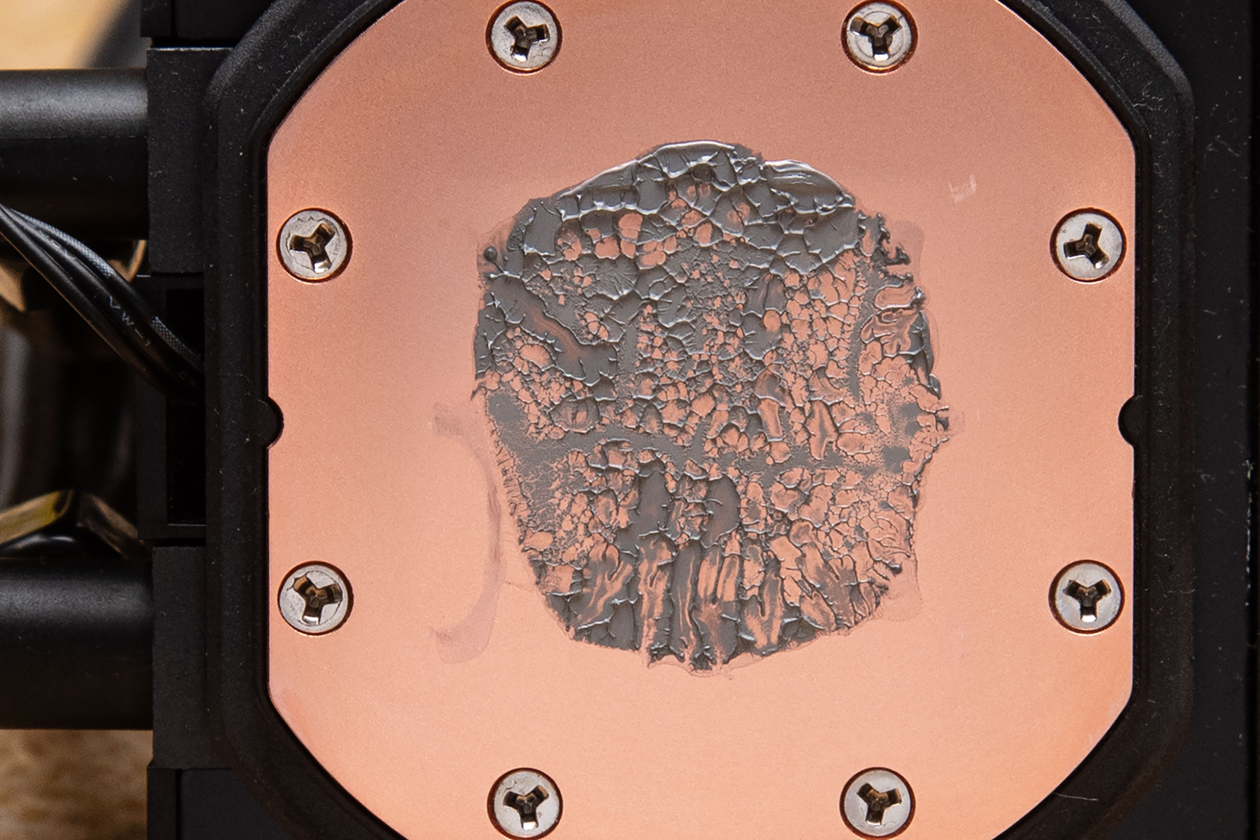 Відбиток термопасти гарний і якихось серйозних проблем з нерівністю підошви тут немає. Скоріше є питання до геометрії кришки самого процесора, через яку паста постійно норовить більше розтектися з одного боку.