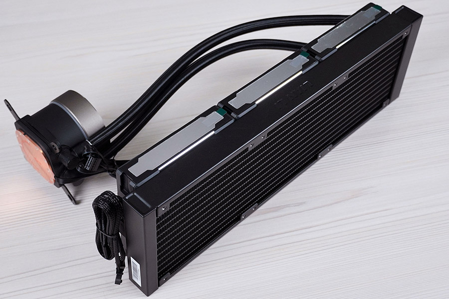 Вага спорядженої системи з вентиляторами дорівнює 1700 грамів. Трубки міцно поєднані з фітингами радіатора, які мають кут у 45 градусів — таке компонування додає зручності для прокладання шлангів в корпусі.