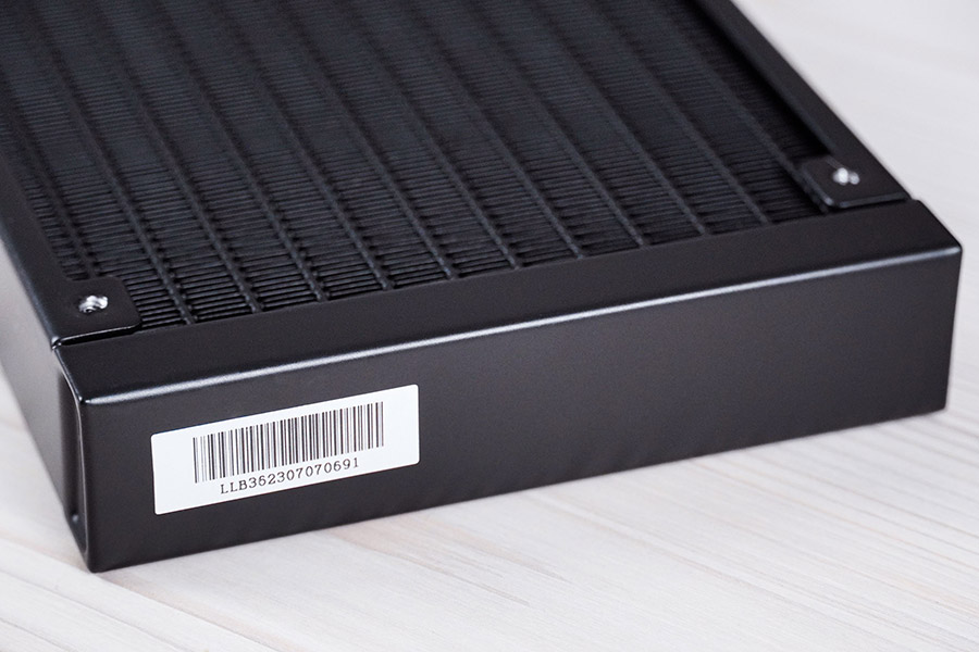 Фактичні габарити радіатора складають 397,5x119,2x27 мм. Бокові ребра жорсткості мають три набори посадкових отворів під 120-мм вентилятори, які будуть розташовані щільно, без проміжку.