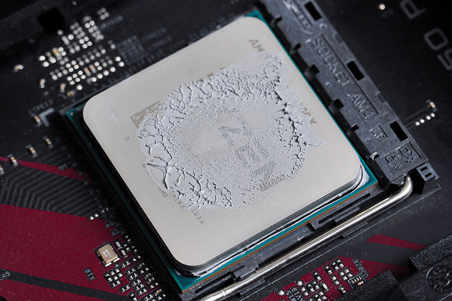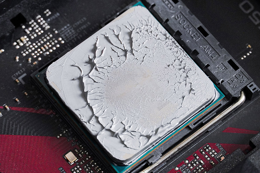 Перший тест притиснення мене не задовольнив. Через стандартне нанесення видно, що паста покриває тільки центр кришки процесора, та через випуклість, контакт з частиною площини відсутній.
